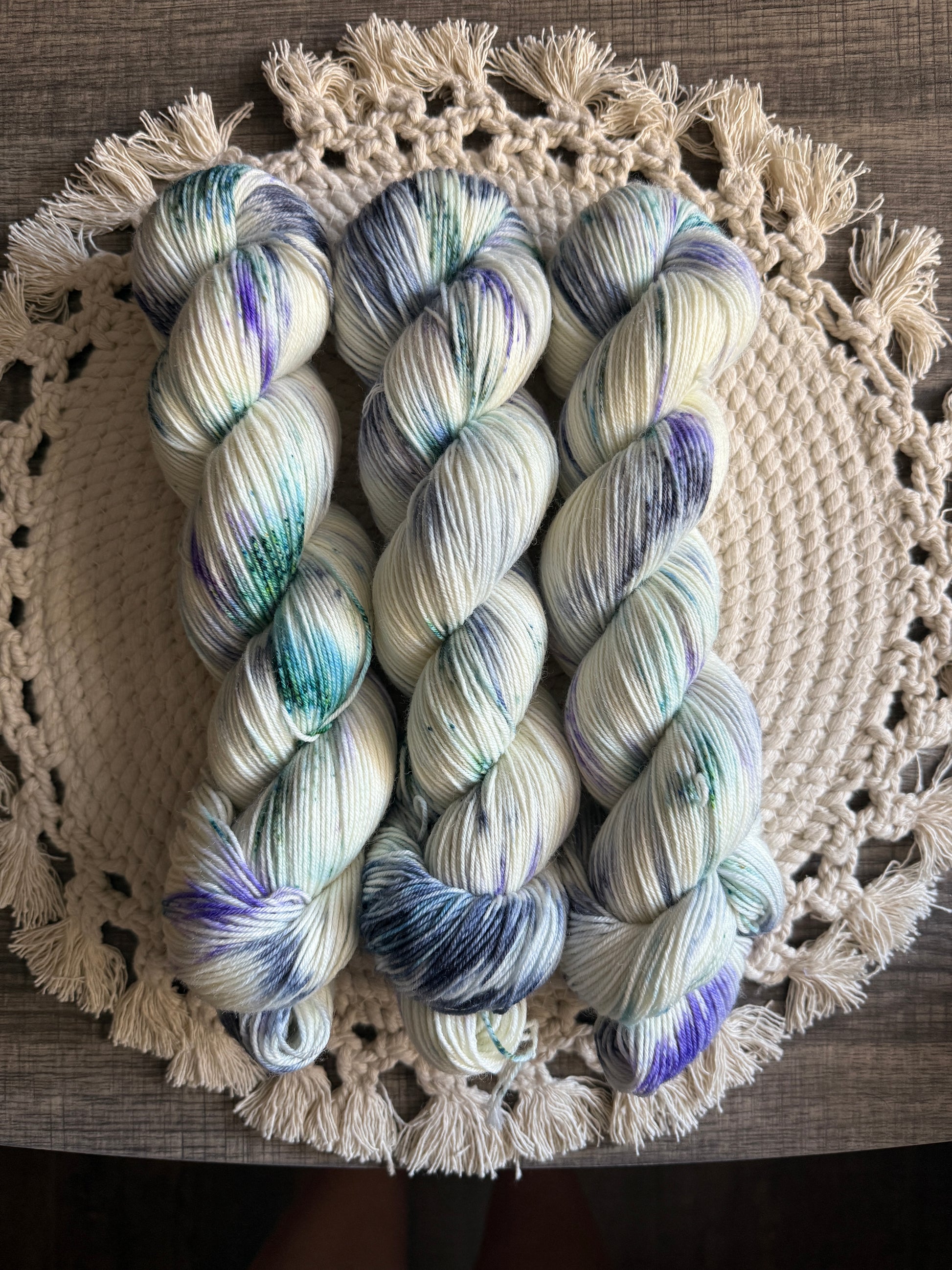 75% Superwash Merino and 25% Recycled Nylon- Fingering weight yarn.