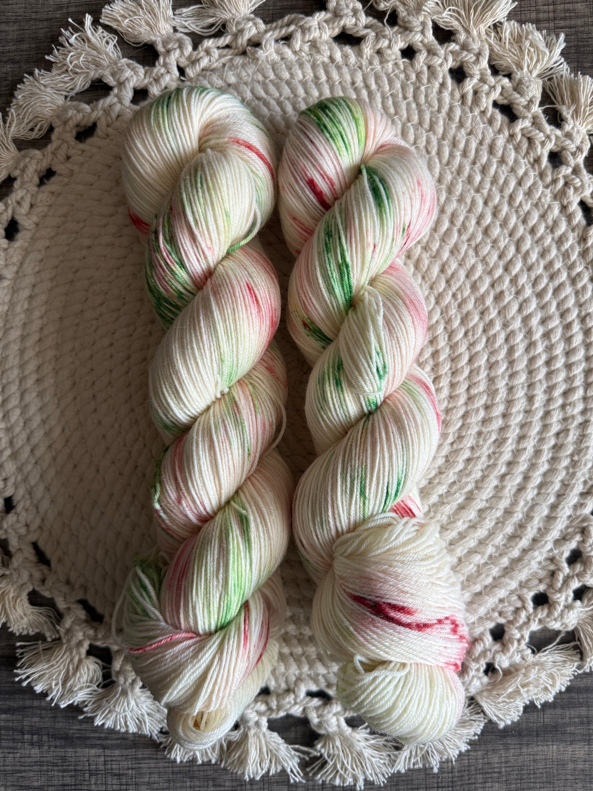 75% Superwash Merino and 25% Recycled Nylon- Fingering weight yarn.