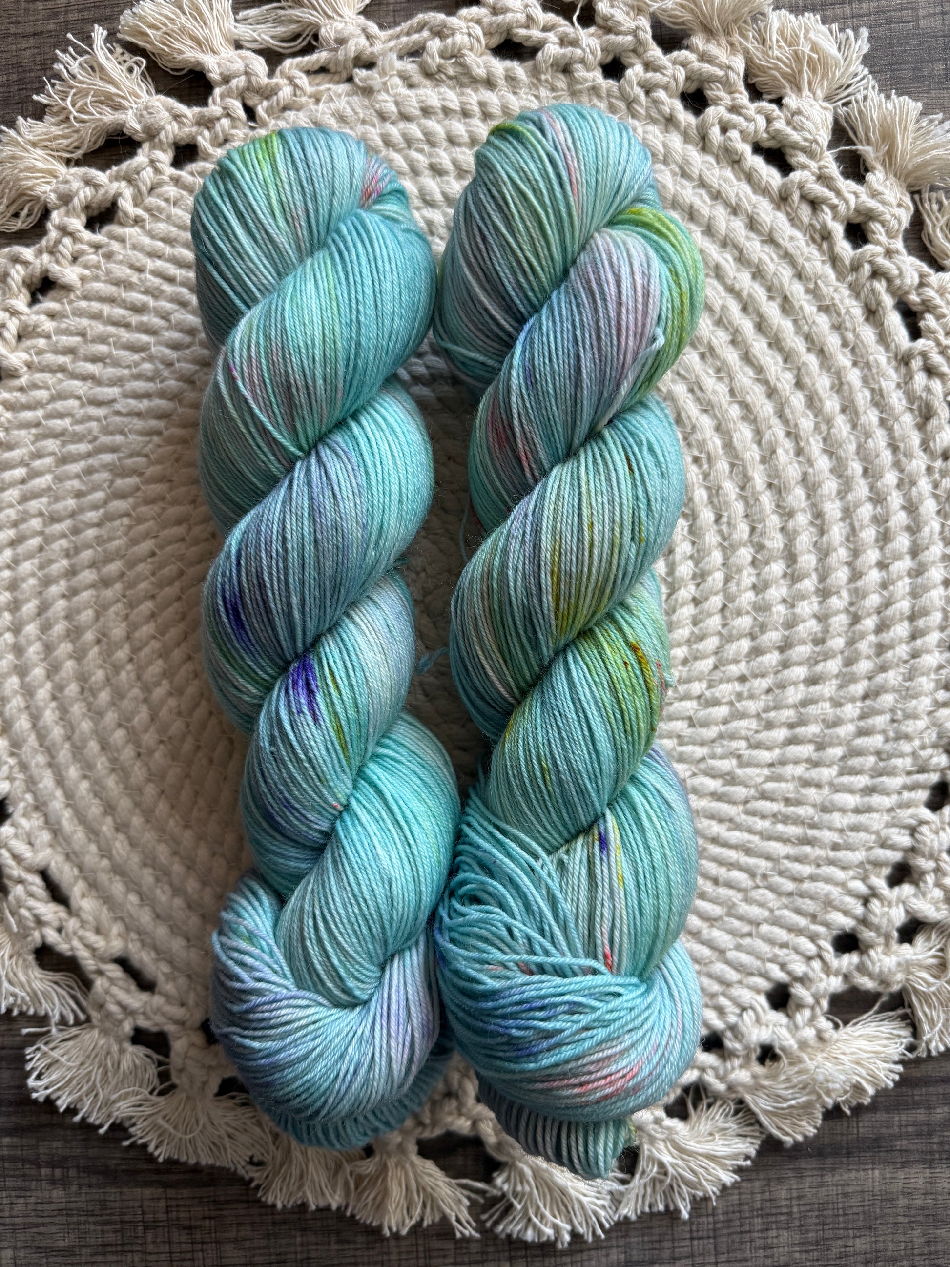 75% Superwash Merino and 25% Recycled Nylon- Fingering weight yarn.